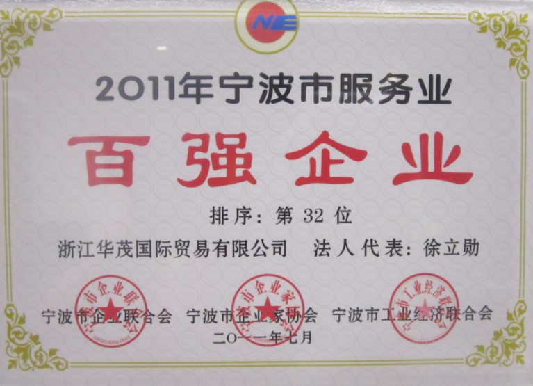 2011年寧波市服務(wù)業(yè)百強(qiáng)企業(yè)第32位